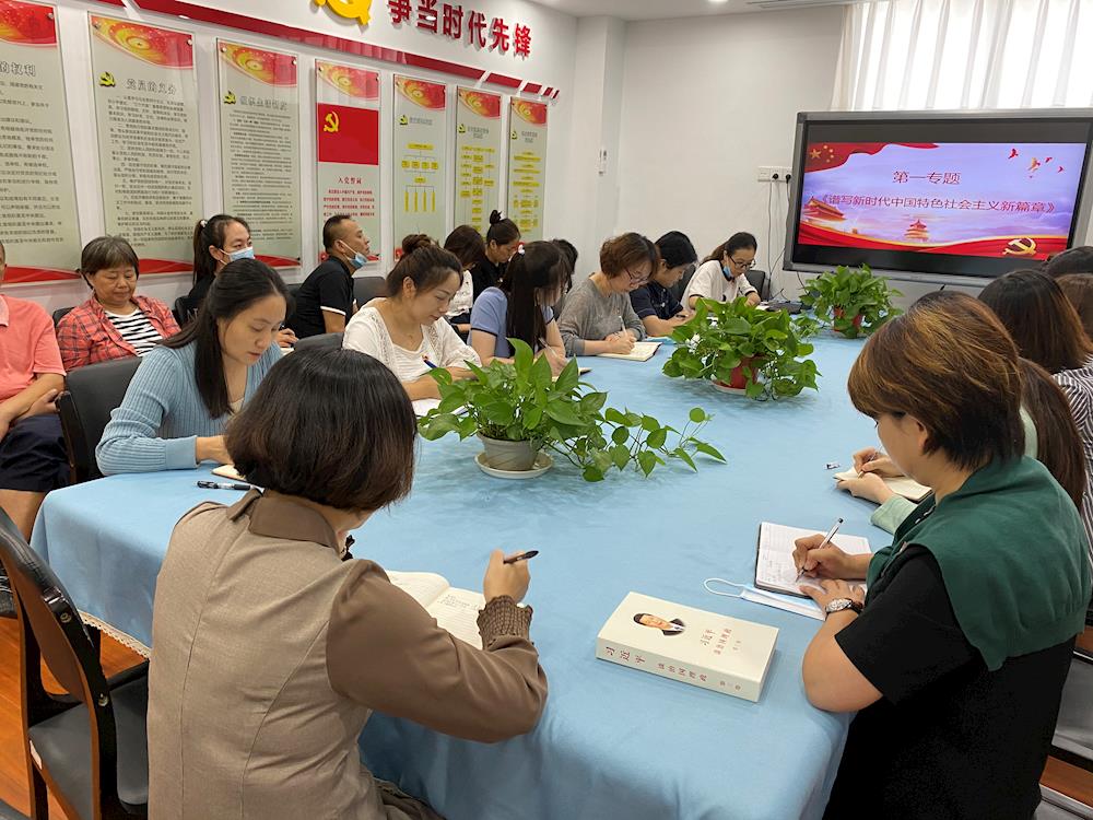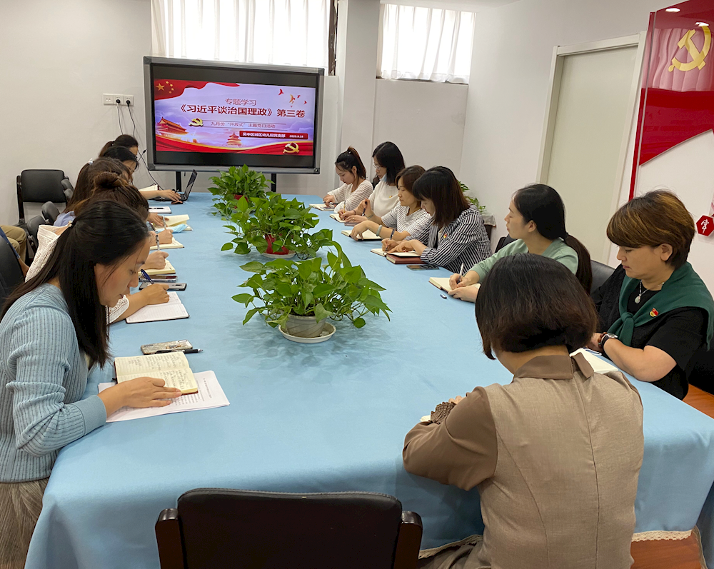 9月18日城区幼儿园党支部组织全体党员开展主题党日活动,专题学习《习近平谈治国理政》第三卷中第一专题《谱写新时代中国特色社会主义新篇章》。